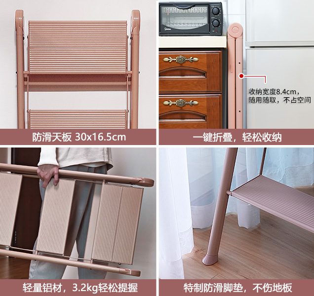 通过欧盟安全标准,轻薄折叠省空间,适用于家居空间、办公室登高等场合
