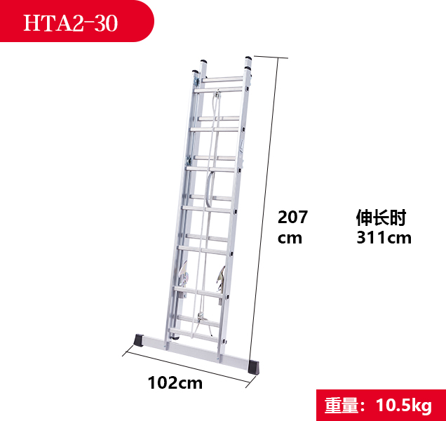 推拉式两连直梯,特质卡扣伸缩时只需上下拉伸即可,根据需求灵活选择使用高度。