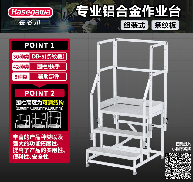 围栏高度为可调结构(900mm/1000mm/1100mm),可选择任意高度安装。