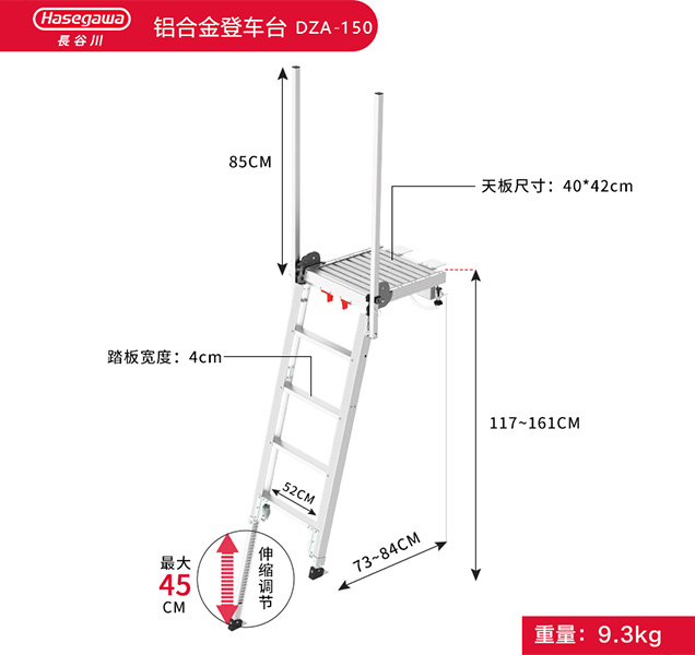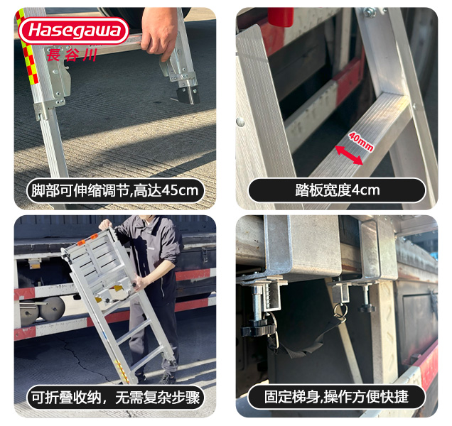 底部配备可调节伸缩脚,可调节高度高达45cm,轻松应对不同地面环境及车厢高度,操作方便快捷。