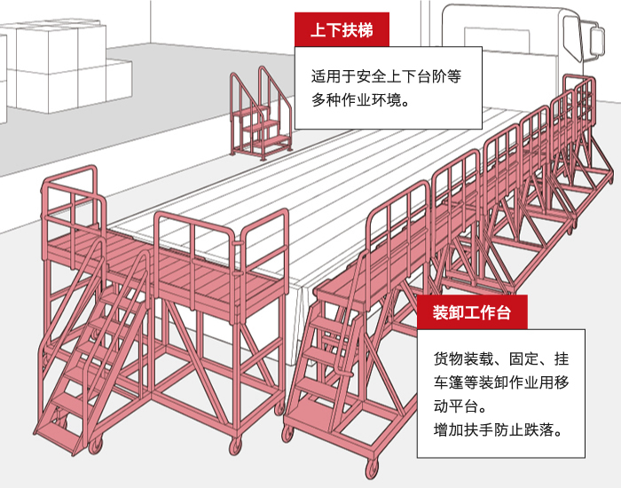 为了保障安全高效的进行拖车、油罐汽车等特殊车辆的装卸货物工作环境,改良定制而成的产品。