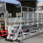 适用于把货物固定或悬挂在已装载货物的卡车上时用的作业台。安全扶手防止跌落,稳固搭脚板确保稳定。根据作业高度搭脚板亦可改为两层。