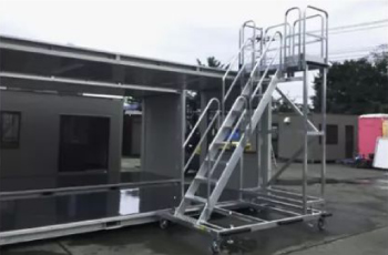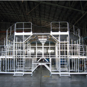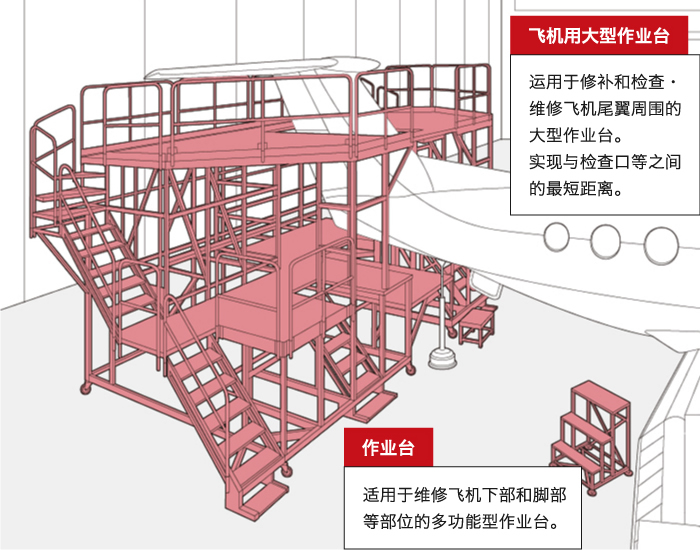 用于检查维修飞机尾翼周围的作业台。多层台阶的设计,便于靠近各个维修定点。