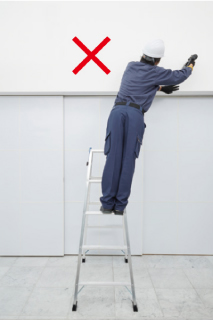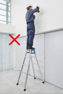 - 在梯子上进行作业时,请站在从天板开始数第三节(210cm以下的型号则为第二节)以下的踏板上,身体轻靠天板和上层踏板,在平稳的状态下操作。