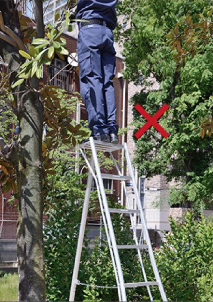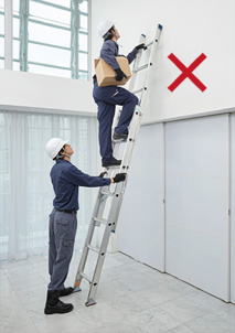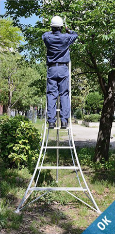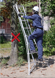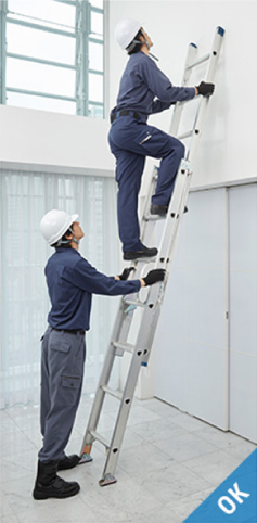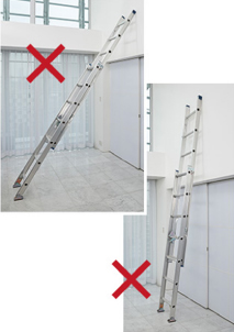 - 将梯子倚靠屋顶等场所时,梯子和建筑物的最佳接触点为踏板从上往下数第2~3级的位置。